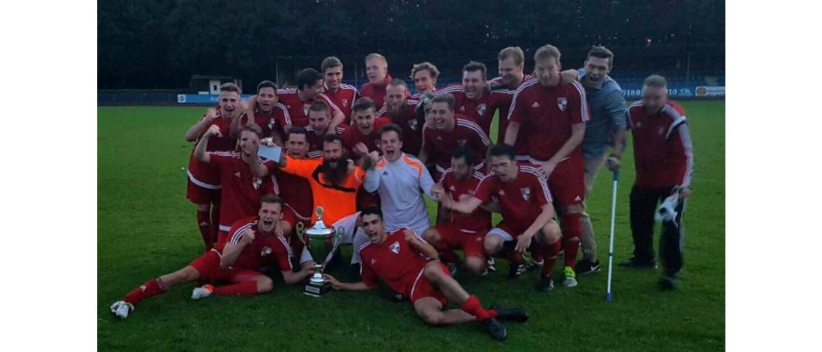 Zwei Monate später konnten die Senioren auch die Stadtmeisterschaft gewinnen. Durch zwei Treffer von Neuzugang Marko Lukas (SC Hassel) besiegten die Rothosen im Finale Horst 08 2:1. Viele bekannte Gesichter von SSV-Legenden erkennt man auf den (leicht verschwommenen) Siegerfotos. Für die SSV war es bis heute der letzte Titel als Feldstadtmeister.